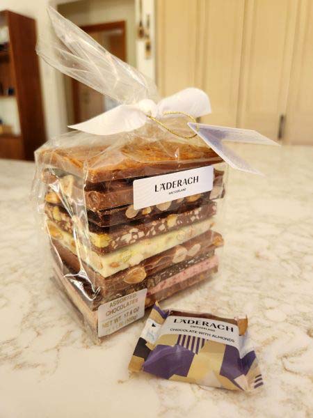 I was shocked and might have gasped when I saw what it was: Läderach candy from Switzerland! Later, Ted showed me the enclosure that listed all the places it’s for sale in the U.S. The closest to us is Chicago.
