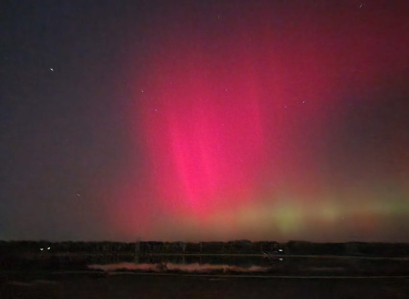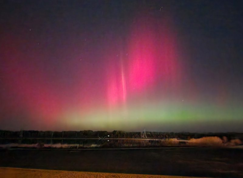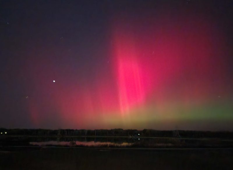 The last time the Northern Lights were visible in this area was May 2024, but Ted and I were not able to see them. Thanks to a major sun storm this week, the Northern Lights were visible again as far south as Missouri. This time, we joined a crowd at a nearby park and saw a beautiful light show.