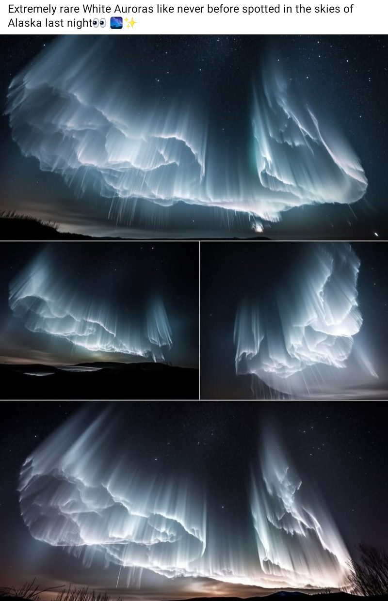 On one of his weather-related websites, Ted found these pictures of rare white Northern Lights that were seen in Alaska during this solar event. Beautiful!