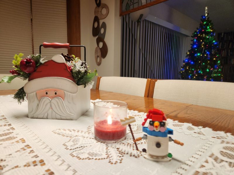 Note: The little Lego snowman on the table was my gift from Thom this year for our traditional Christmas Lego exchange.
