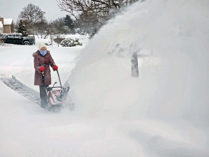 We are a rarity in our neighborhood. Our snowblower can handle a foot of snow–usually enough in our area–but if heavy snow is expected, we take advantage of any breaks in the snowfall to clear the accumulated snow and then we clear it again after more snow falls. We think of this as a great way to get outside and to play in the snow! Our neighbors who usually wait for the storm to pass, had a hard time shoveling 15 inches of snow out of their double-wide driveways. Even those with snowblowers had to resort to using a shovel. Several of our neighbors hired a man with a small tractor and a scoop to clear their driveways.