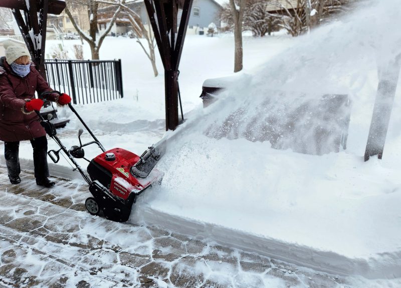 This year, we had a 2-day snowstorm that dropped 6 inches of snow the first day, followed by 9 more inches of snow the following day. The elderly lady, whose driveway Ted used to clear, has moved away, and the other widow neighbor hired a person to clear her driveway, so Ted played with our snowblower for the first 6 inches. I’m glad he did because, after the 9 inches fell, the snowbanks Ted created along the edges were just visible enough for me to see where I should go on the second day instead of needing to find where the concrete ended. He also cleared the sidewalks while I worked on the driveway and the patio.